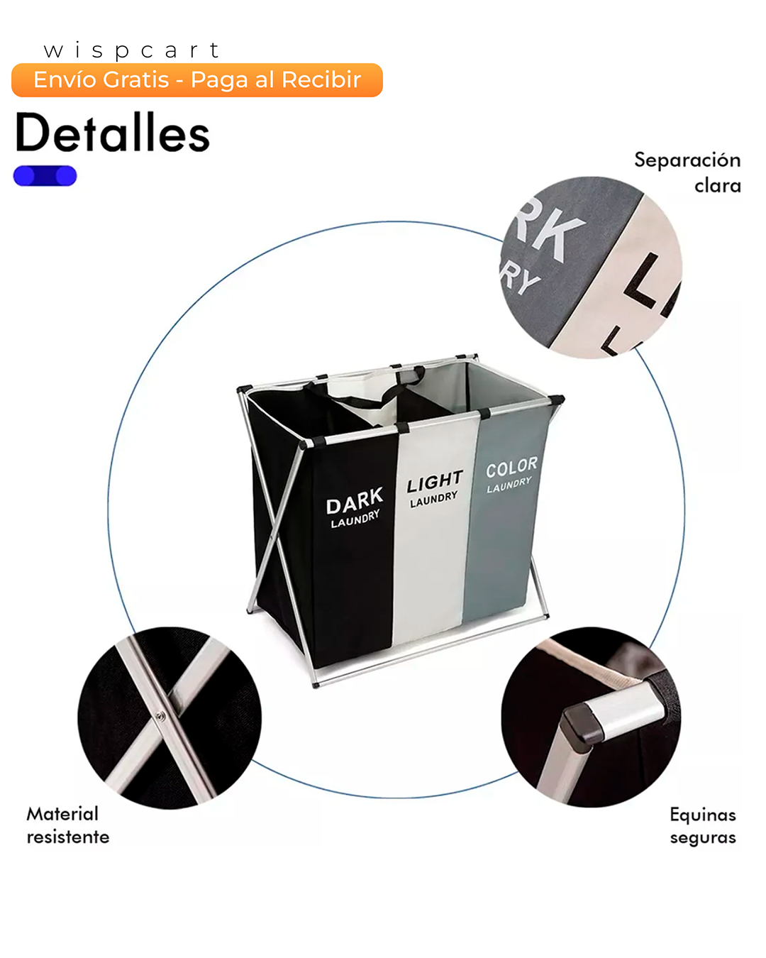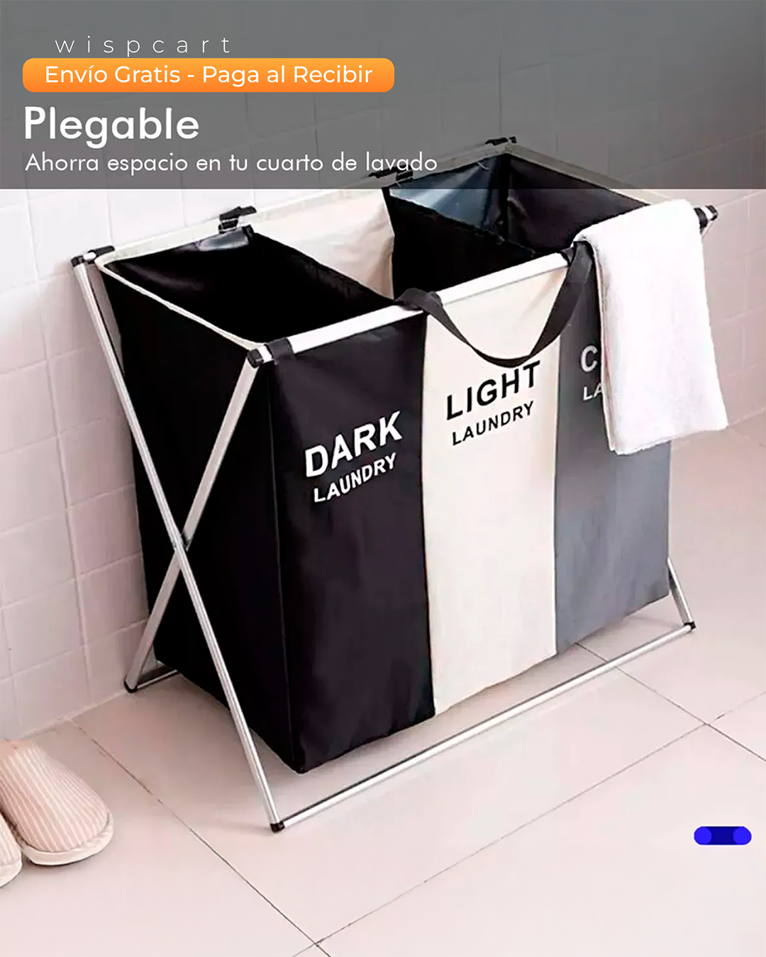 Simplifica el día de lavado con nuestra cesta de lavandería de 3 secciones. Este práctico clasificador te permite separar fácilmente tu ropa por color o tipo, ahorrándote tiempo y esfuerzo. Su diseño plegable y portátil con asas integradas hace que sea muy fácil de mover y guardar cuando no la necesitas. Fabricada con materiales resistentes y disponible en un elegante diseño de tres colores (negro, gris y blanco), es la solución perfecta para mantener tu espacio ordenado.