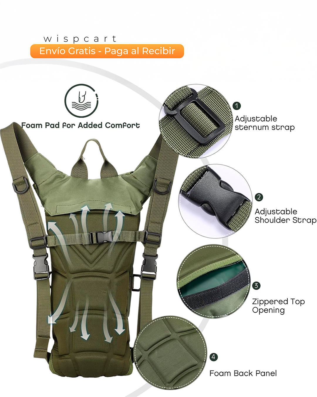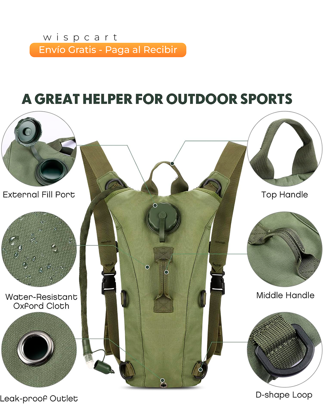 Hidrátate en cada aventura con la mochila de hidratación. Ligera y cómoda, es la compañera perfecta para correr, pedalear o hacer senderismo. Incluye una vejiga de hidratación de 2.5 litros, libre de BPA y con una válvula de mordida para un flujo de agua sin esfuerzo. Su diseño ergonómico, con correas ajustables y un panel trasero acolchado y transpirable, te asegura el máximo confort. Además, está fabricada con tela Oxford 800D, lo que la hace resistente a rasgaduras, y cuenta con un bolsillo trasero para guardar tus esenciales de forma segura.