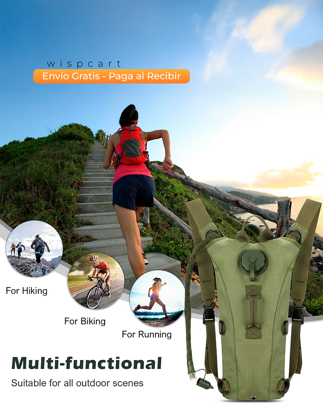 Utilizado para: camping, ciclismo, senderismo, actividades deportivas, caza, escalada